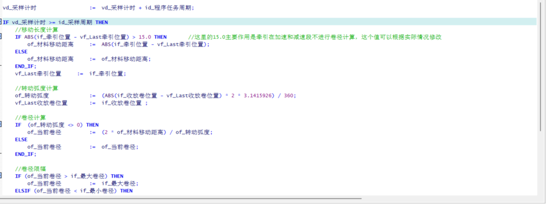卷径计算(前馈量):在控制系统中为了降低PID补偿的输出通常需要增加前馈量计算,在收放卷系统中前馈量