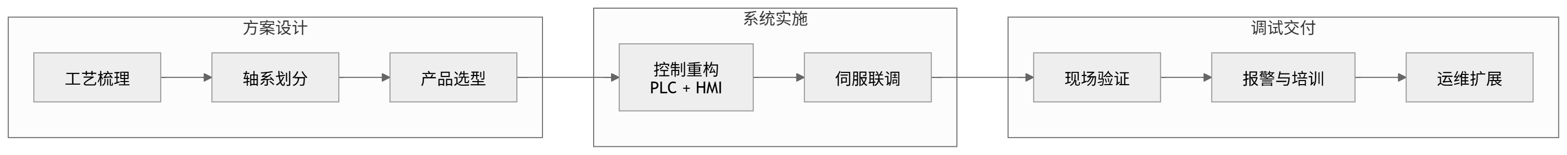 - 处理参数迁移和联调。 新旧架构切换过程中,容易出现跟随误差、动作节拍不一致、辅机速度配合不稳定等问题,这些都需要现场联调经验。