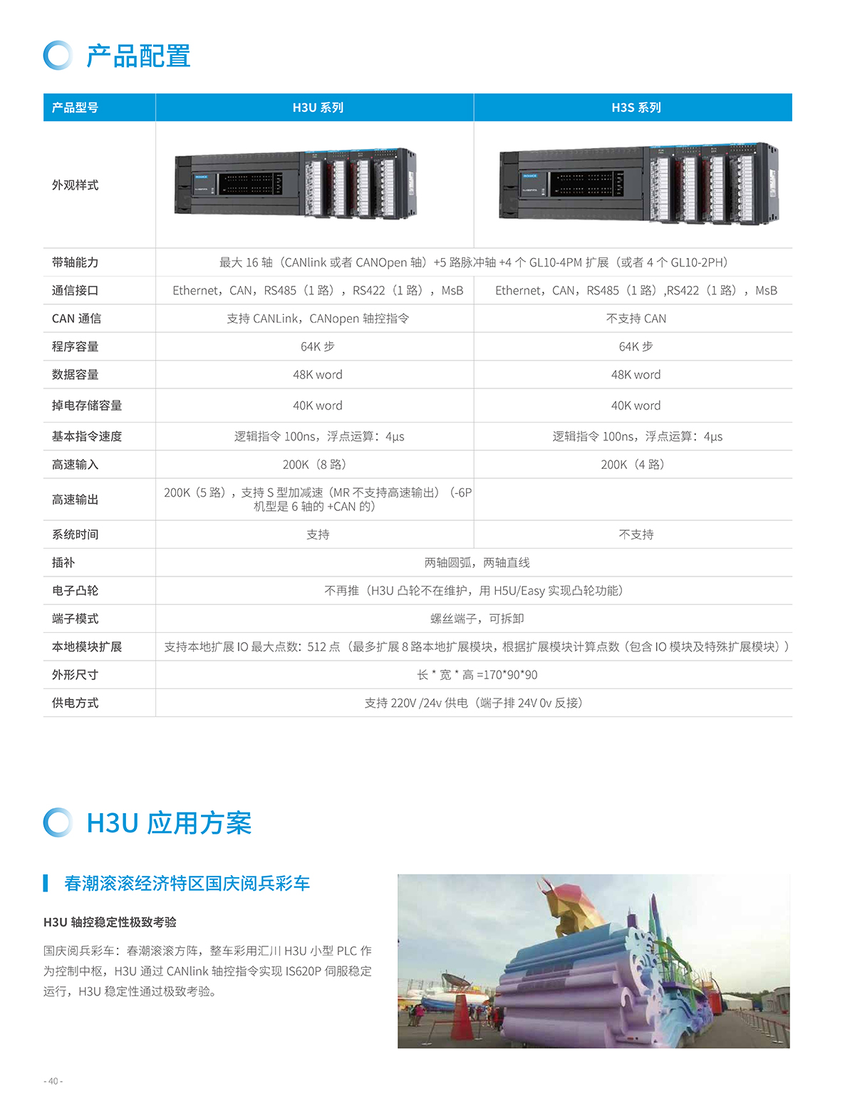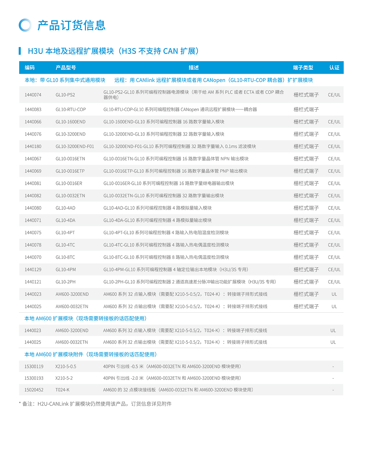产品性能: H3U-XA 控制器隶属于汇川技术开发的第三代高性能PLC。得益于新一代工业级 CPU 与 FPGA 硬件架构,以及自主知识产权工业强 度嵌入式软件设计,使得产品在性能以及容量上都有了巨大的提升。同时还具备定位,轨迹控制等众多功能。 适用行业: 产线自动化、木工机械、玻璃机械、搬运、上下料、电子非标等先进制造行业