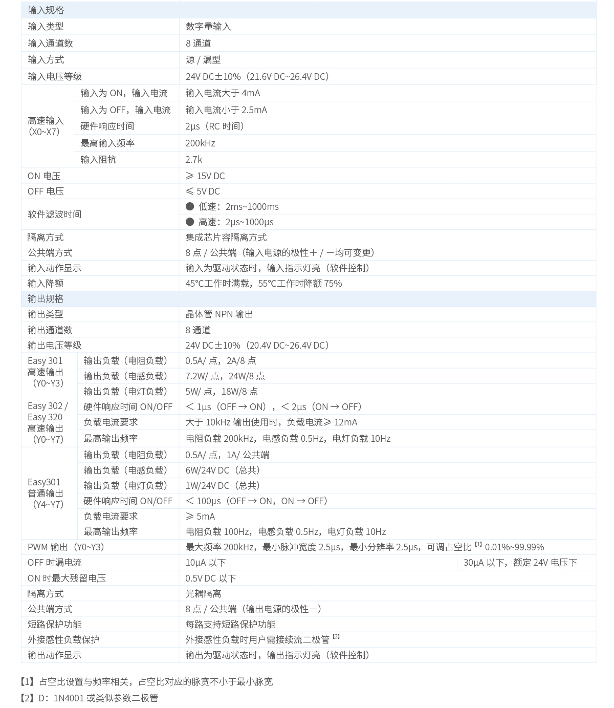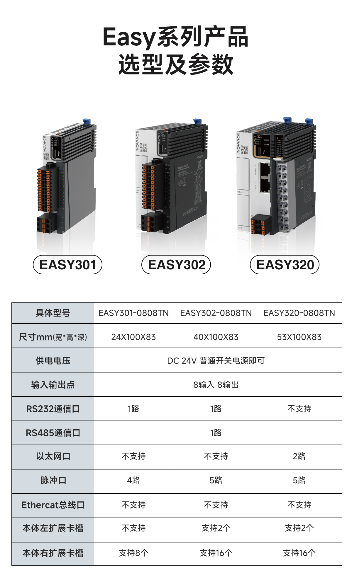 | 型号 | Easy301-0808TN | Easy302-0808TN | Easy320-0808TN | Easy501-0808TN | Easy502-0808TN | Easy521-0808TN | Easy522-0808TN | Easy523-0808TN |