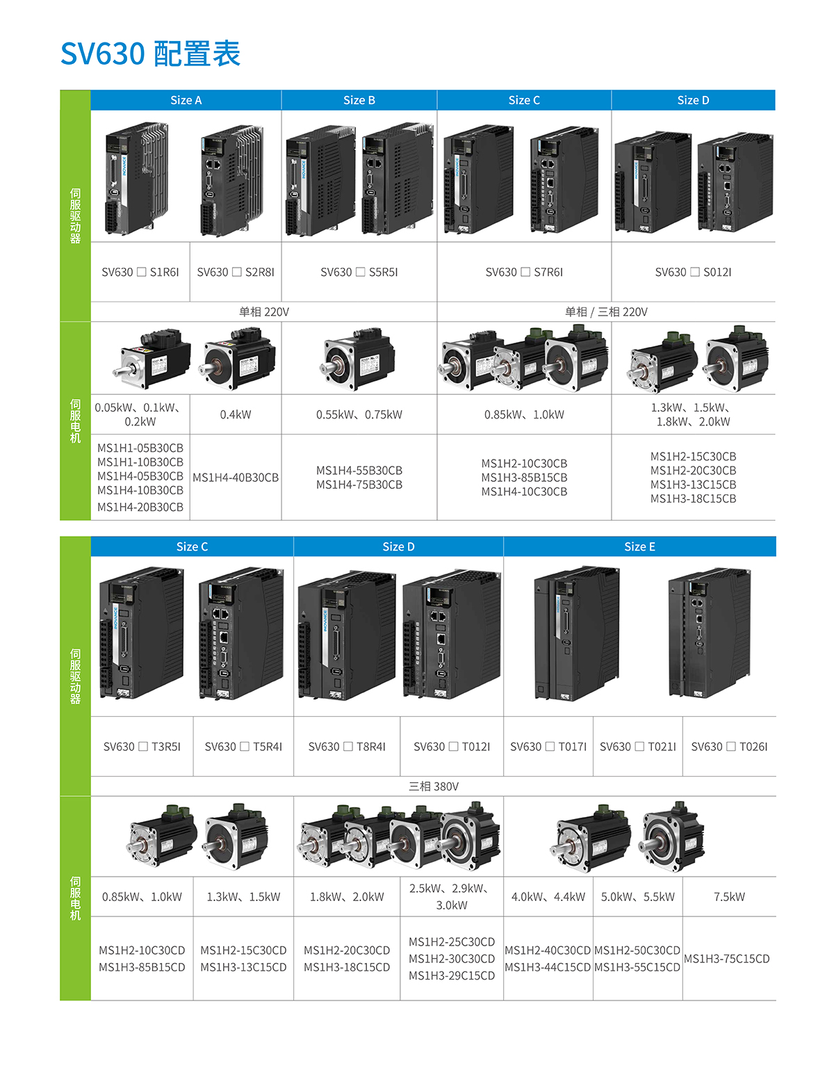 | 驱动器型号 SV630PIA/C/N | T3R5I | T8R4I | T017I |