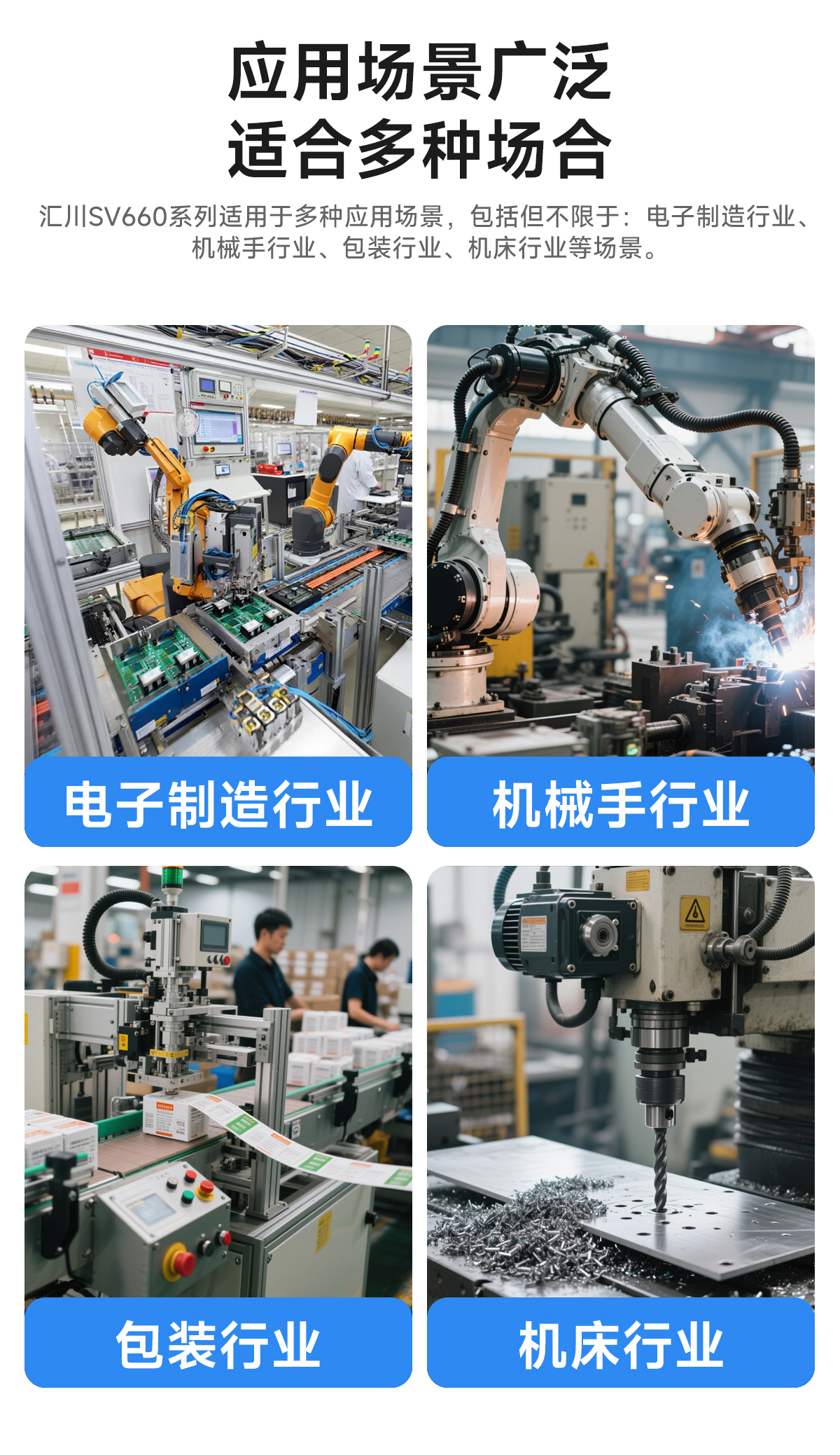 SV660系列伺服是汇川技术研制的高性能中小功率的交流伺服产品。该系列产品功率范围为0.05kW~7.5kW,支持EtherCAT 、Modbus、CANopen 、CANlink 和PROFINET等通信协议,采用对应的通信接口,配合上位机可实现多台伺服驱动器联网运行。