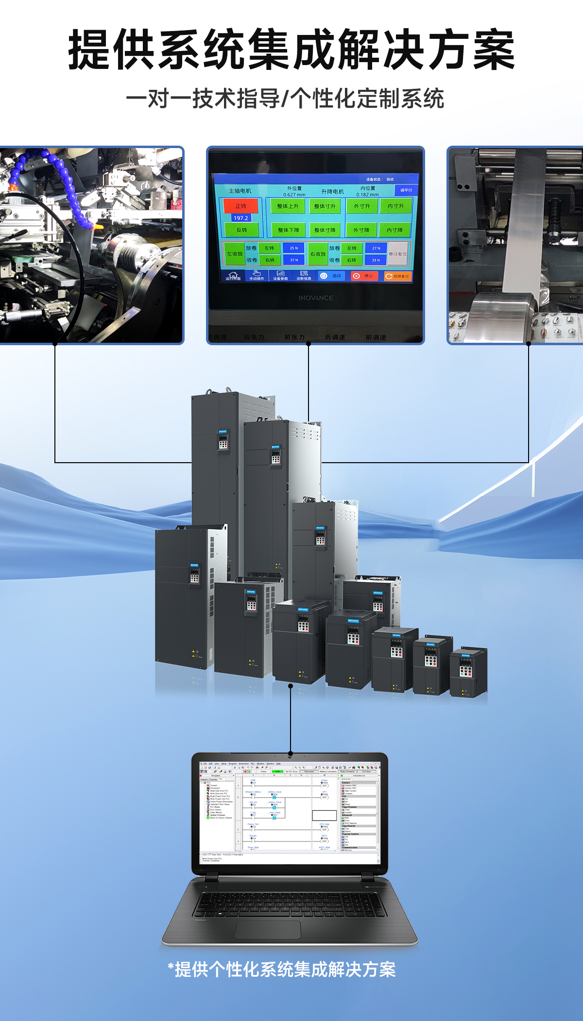 | 用户可编程 | 选配用户可编程卡,可以实现二次开发,编程方式兼容汇川公司的PLC |