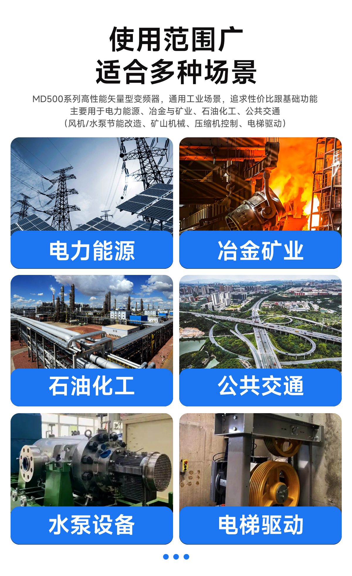 MD500 是汇川技术汇集了矢量变频技术的高性能变频器,凭借高性能的电流矢量技术,可轻松驱动感应电动机。MD500 采用高性能、高品质、高功率密度设计,在易用性、可维护性、环保性、安装空间和设计标准等方面有显著提升,可进一步优化用户的使用体验。
